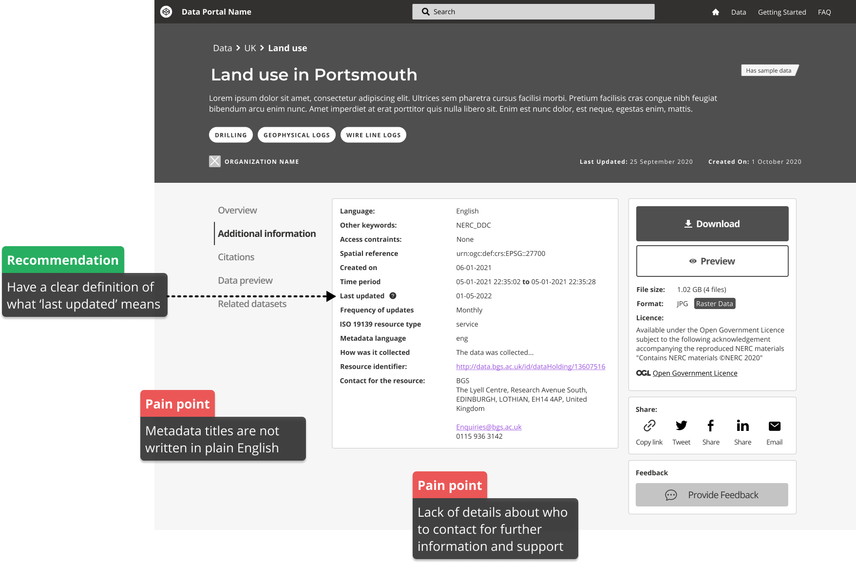 This improvement has the potential to result in significant time and cost savings for businesses, research institutes, organizations, charities, and the general public when it comes to searching for and generating data, by ensuring that data portals are consistently designed and provide easy access to datasets through web-based interfaces based on comprehensive metadata records that describe the datasets and offer guidance on their location and usage restrictions.