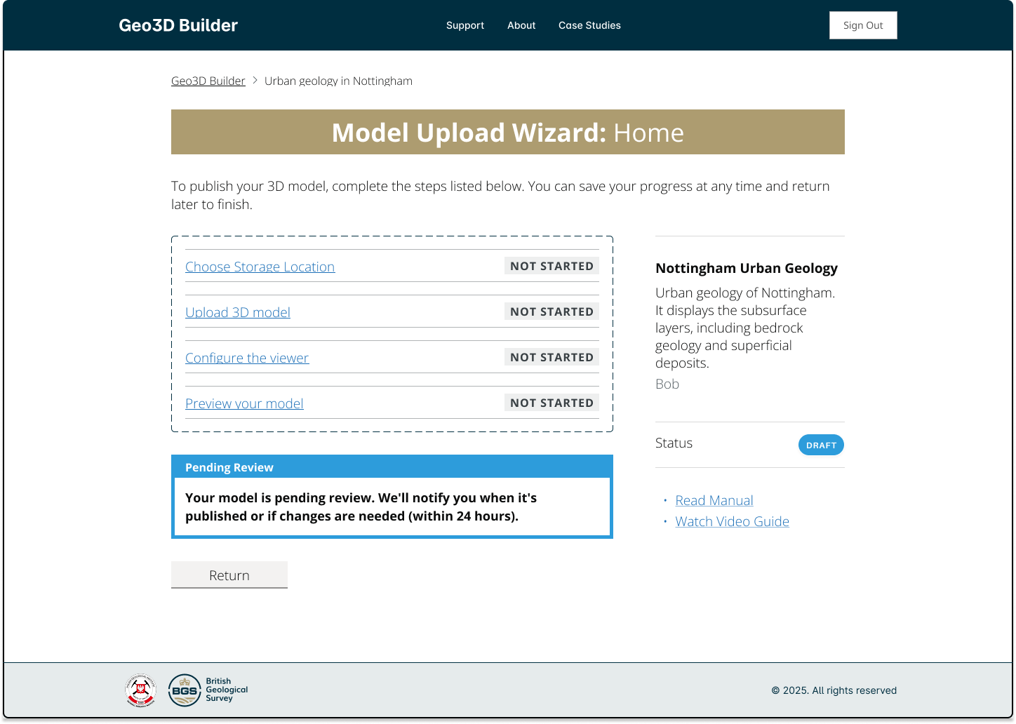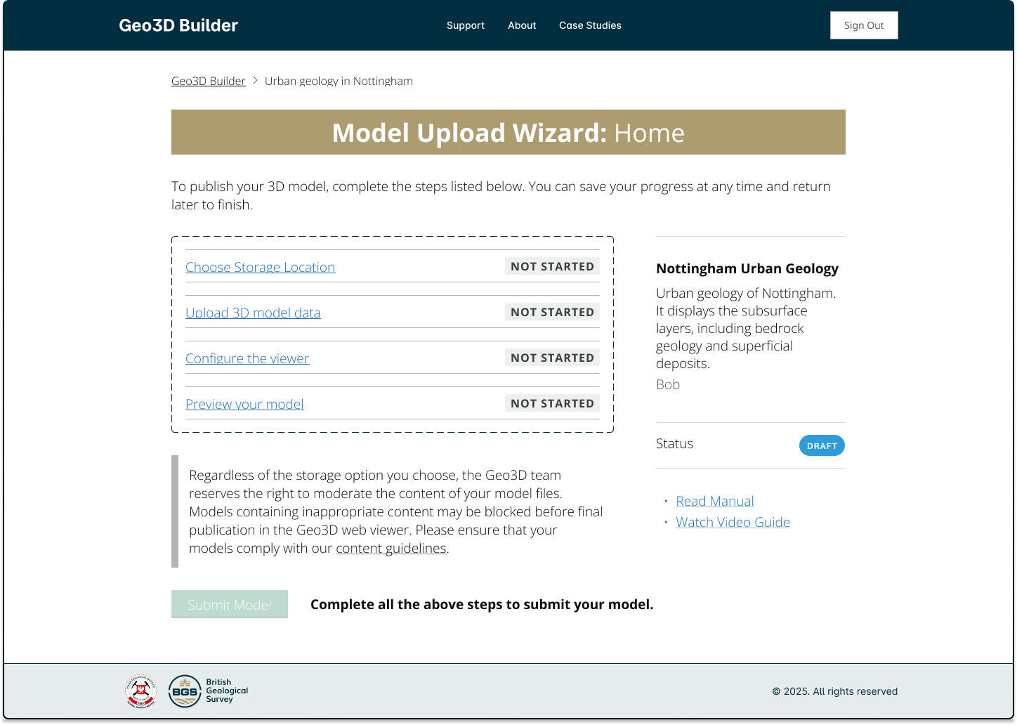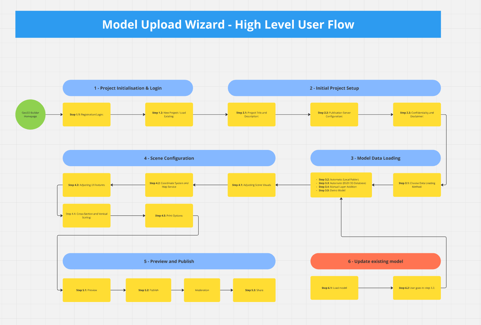 I led UX research and design for Geo3D Builder, collaborating with Polish Geological Institute and BGS teams. I conducted user research, designed the wizard interface using Figma and GOV.UK Design System, and led usability testing throughout development.